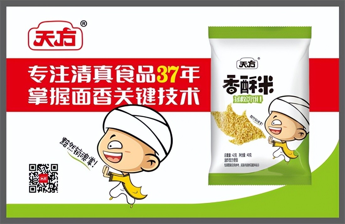 记忆里,两个讨喜的胖娃娃坐着飞毯,一边啃面一边竖大拇指,“脆酥香,数天方,天方面,味真香”的经典广告词从耳边传来。当时天方也是河南方便面企业中第一个连续三年在河南电视台投放广告的企业。