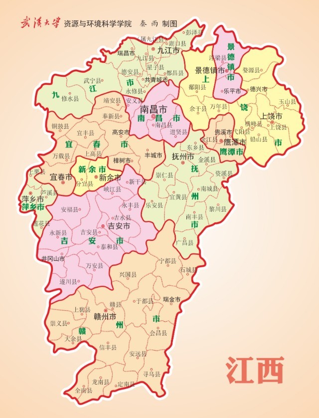 江西省—— 江西省,简称“赣”,是中华人民共和国省级行政区,省会南昌。因公元733年唐玄宗设江南西道而得省名,又因为省内最大河流为赣江而得简称。江西位于中国东南部,长江中下游南岸,地处华东地区,界于东经113°34′36″-118°28′58″,北纬24°29′14″-30°04′41″之间,东邻浙江、福建,南连广东,西靠湖南,北毗湖北、安徽而共接长江。总面积16.69万平方公里