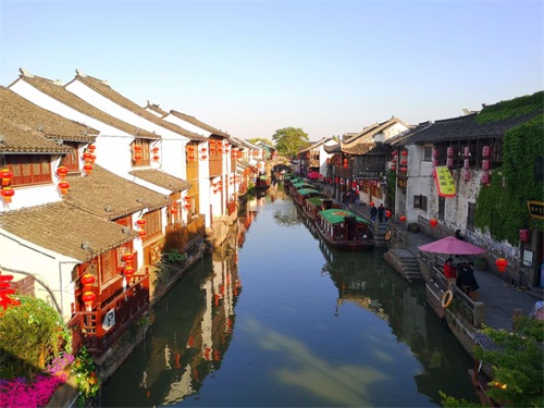 山塘街位于江苏省苏州古城西北,东至红尘中“一二等富贵风流之地”阊门,西至“吴中第一名胜”虎丘,全长约3600米,约合7华里,故称“七里山塘到虎丘”。