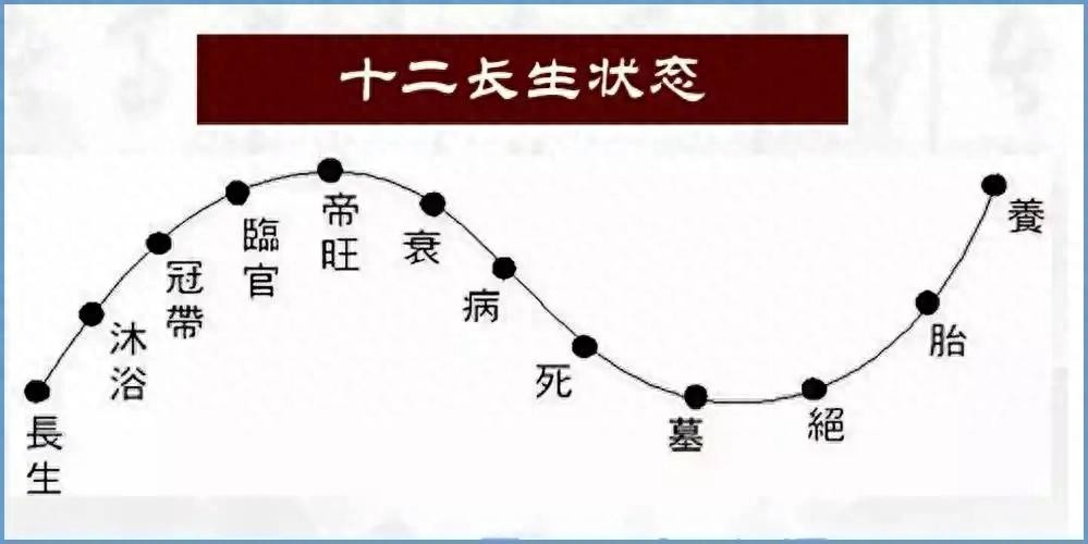 长生:婴儿呱呱落地沐浴:给新生儿洗浴冠带:成长为少年,古人有戴冠之礼临官:开始步入社会,事业起步帝旺:事业发展鼎盛,年富力强状态蕞佳衰:身体机能开始由盛转衰,步入人生下半场病:身体健康每况愈下,体弱多病死:寿终正寝,生命结束墓:下葬,长眠绝:在这个物质世界的一切痕迹消亡胎:入胎成为胎儿,重新开始人生之旅养:十月怀胎,准备出生