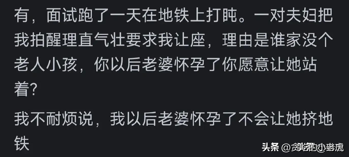 “地铁被要求让座,回怼老婆怀孕不让挤地铁。”
