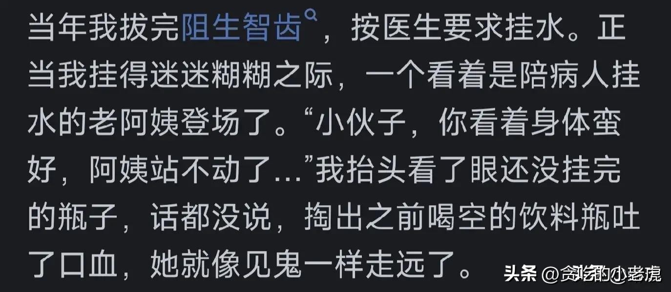 “挂水被阿姨要求让座,吐血吓走她。”