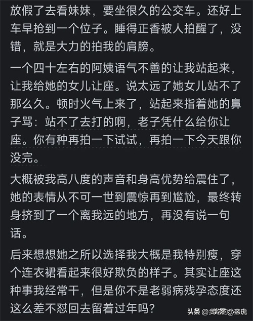 “被阿姨要求让座,怒骂回去,不让座也得看态度。”