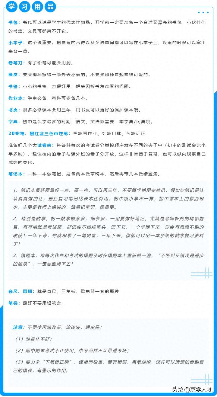 部分初中发布了新初一入学清单,有的家长也开始在帮孩子准备入学需要的物品,根以上就是据往年的情况整理出的这份开学必备清单,助大家轻松捋顺开学季!