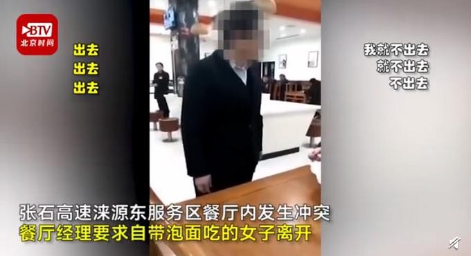 女子高速服务区餐厅吃泡面遭驱赶,餐厅经理高喊:这是我的地盘