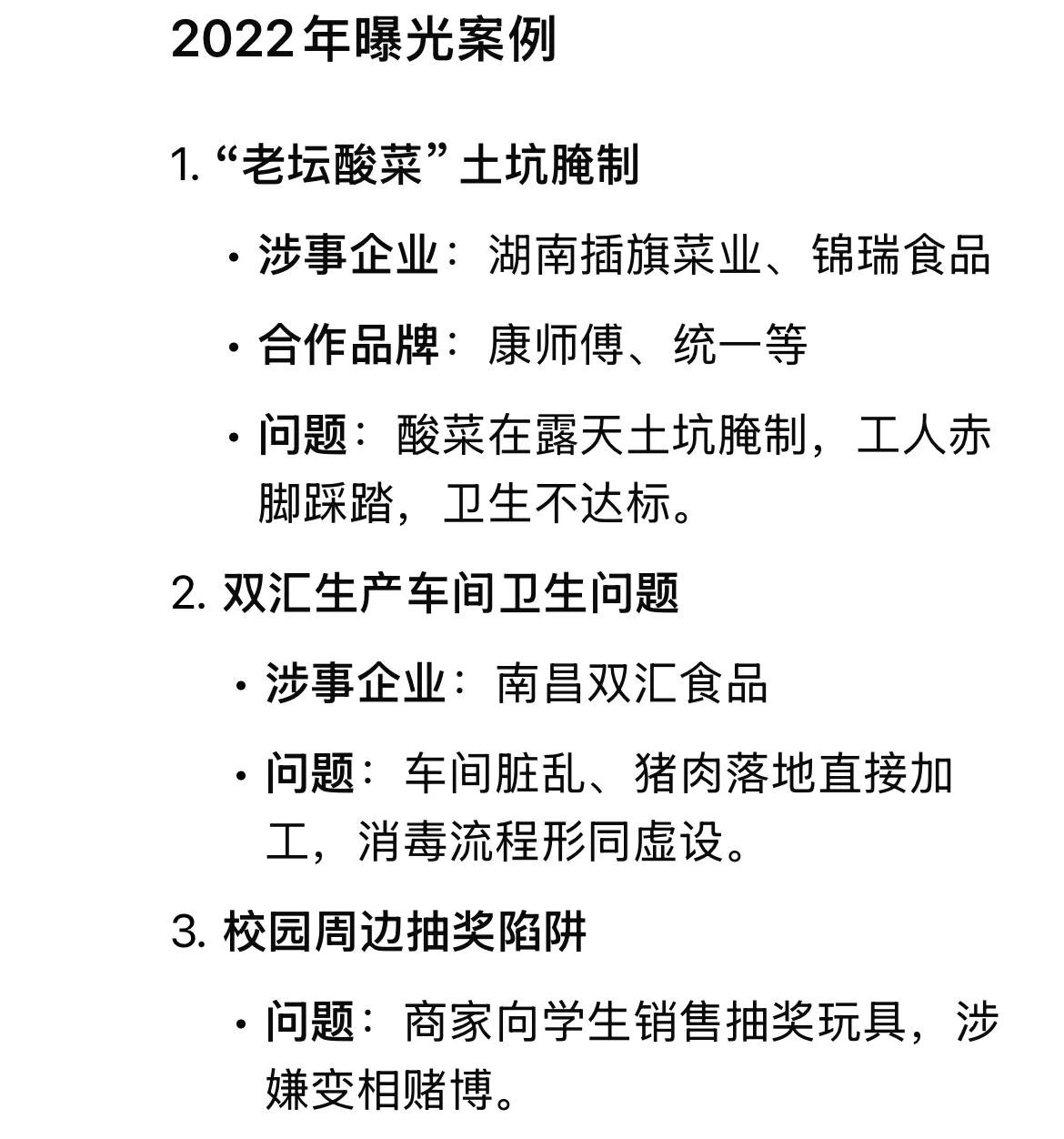 央视“3·15晚会”每年曝光的问题产品和品牌涉及多个行业,以下是近年来被曝光的一些知名案例:
