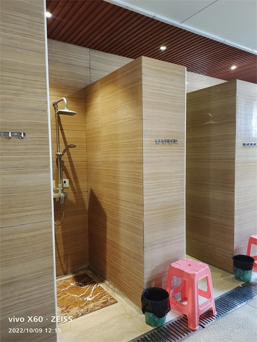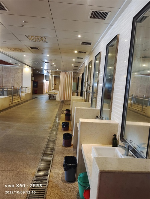 淋浴室内的洗手池,对面浴帘里是搓泥、牛奶按摩区