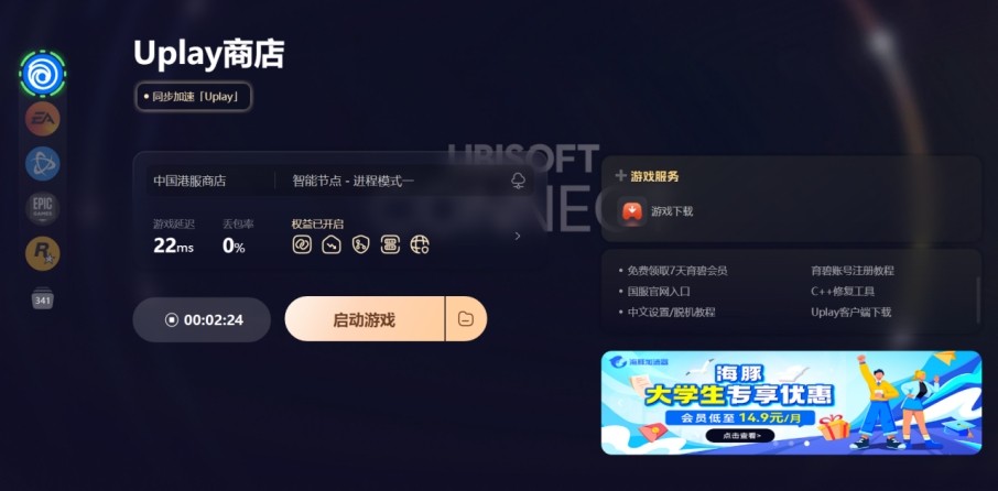 面对网络环境可能带来的下载瓶颈,一款专业的加速工具无疑是玩家的得力助手。以海豚加速工具为例,它能够针对Uplay平台进行深度优化,有效改善本地网络环境,减少网络延迟与数据包丢失,从而显著提升下载速度。只需简单几步操作,即可让您的Uplay下载速度焕然一新,轻松解决因网络问题导致的下载难题。