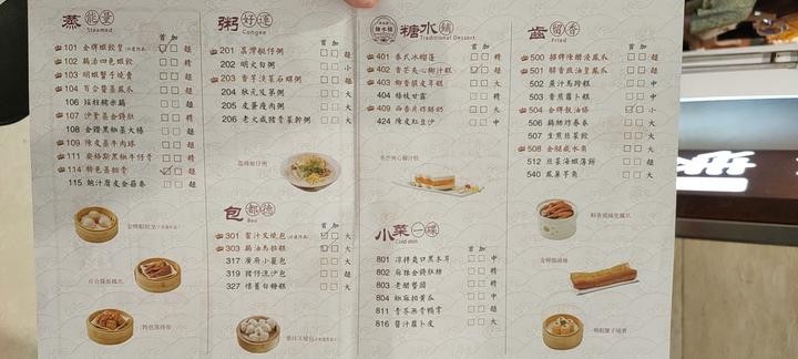 沙爹金钱肚相差11块、金牌虾饺皇相差2块、艇仔粥差6块、明虾蟹子烧卖相差8块、招牌陈醋凤爪相差5块、香芒夹心椰汁糕相差10块……