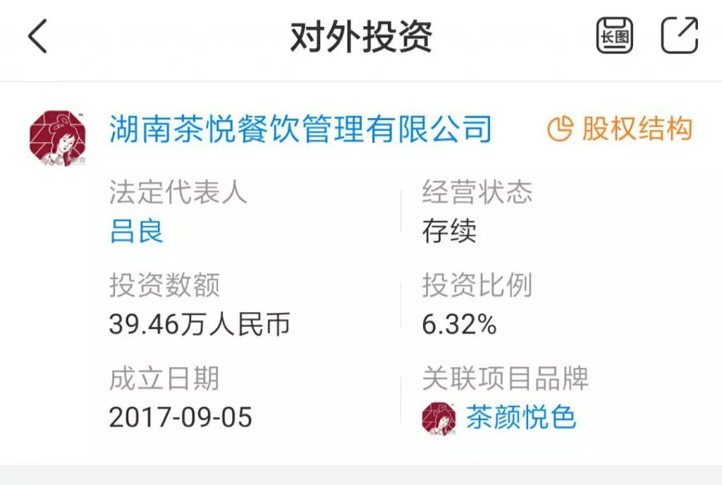记者在天眼查上看到,7 月 5 日,苏州元初投资合伙企业(有限合伙)以 6.32% 的持股比例投资了湖南茶悦餐饮管理有限公司,认缴金额为 39.4616 万人民币,持股比例并不高。从该公司的对外投资一栏看到,目前该公司只投资了湖南茶悦餐饮管理有限公司一家公司。