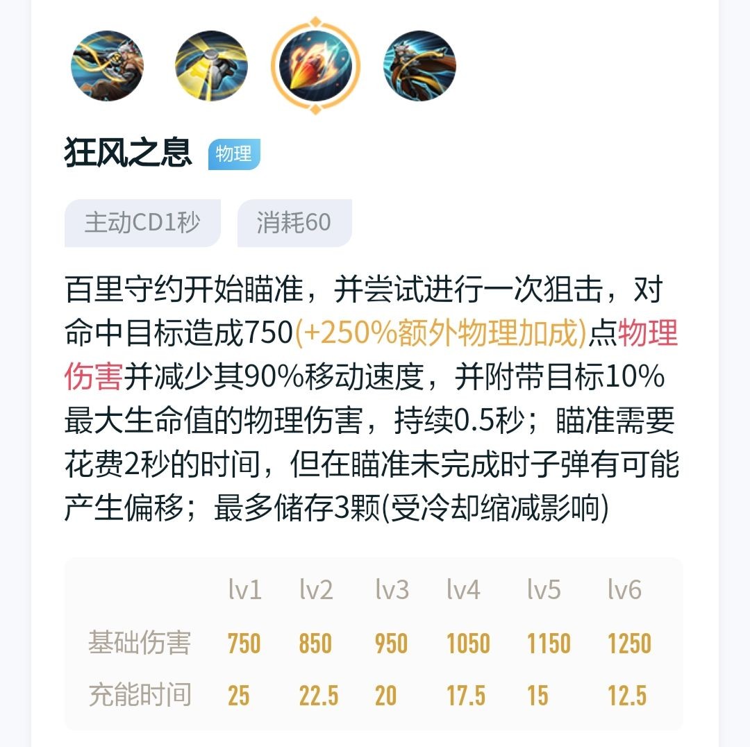 百里守约二技能:瞄准狙击,命中目标会造成750(+250%额外物理加成)点伤害,减少90%移速,并附带目标10%最大生命值的物理伤害,最多可狙击三次。这是百里守约最重要的技能,也是今天讨论的重点。