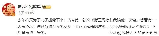 德云社冯照洋打卡滕王阁,背诵全文获赠门票,要给儿子做榜样