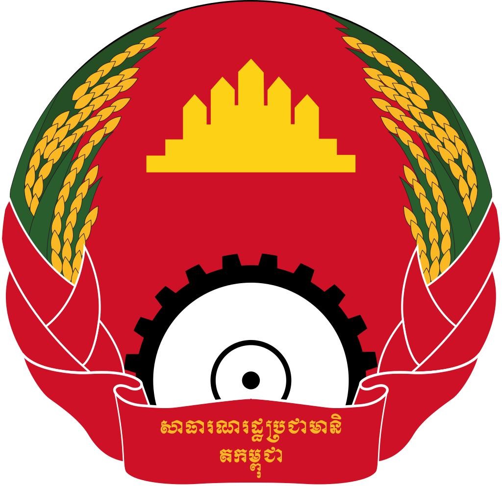 显然,民主柬埔寨的国徽也是典型的社会主义国家的形式,上面是工厂、农田、水坝、麦穗等元素。这个形式与中国、越南目前的国徽也有着类似的地方,但是更像朝鲜的国徽。