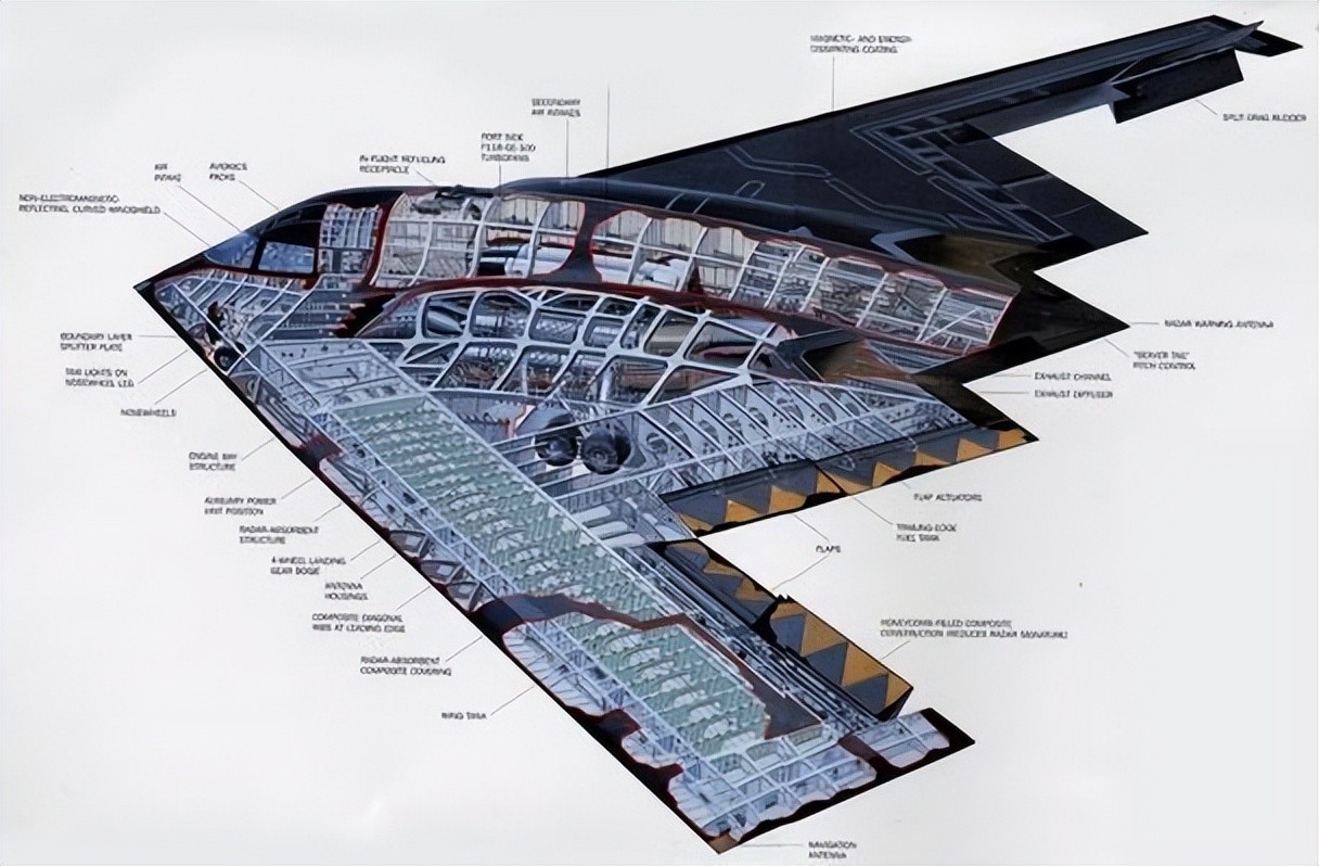 B-2隐身轰炸机的出现,标志着隐身技术在飞机设计中的革命性突破。其独特的飞翼结构和采用的隐身涂层,使其在雷达上几乎不可察觉。通过降低雷达反射面积,B-2在执行任务时能够有效躲避敌方的侦测和拦截,实现突防和精确打击目标。此外,B-2还采用了复合材料和先进工艺,进一步减少了红外线和热红外追踪的可能性,提高了其生存能力。