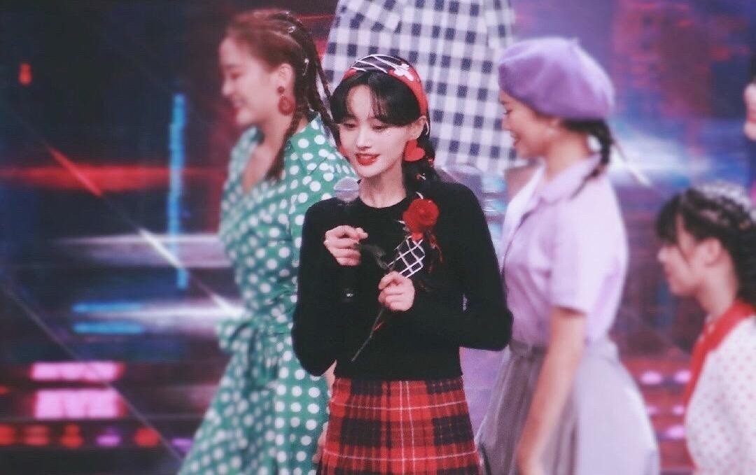 节目中,郑爽穿着黑色上衣,红色格子裙,加上配套的发带,温婉又可爱。而与她搭档的费启鸣则一身复古英伦装扮,与郑爽非常相配。