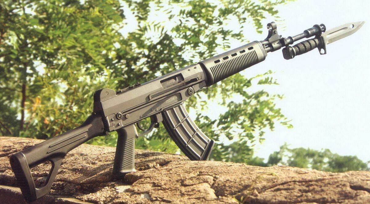 03式5.8mm折叠托自动步枪作为我国最新研制的单兵作战武器,其机构动作可靠,适应性强,射击精度高,威力大,而且全枪的体积和重量也控制得相当好。相信随着03式步枪的逐步装备部队,一定会获得战士们的珍爱。03式步枪是我国最新型的步枪,代表了我国21世纪枪械设计制造的水平,在世界名枪之林也能占据一席之地03式5.8mm自动步枪采用导气式自动原理,枪机回转式闭锁机构。该枪设有空仓挂机机构,并设有发射机保险和不到位保险。全枪质量轻,折叠后长度短,携行和操作方便,不完全分解结合不需要专用工具。该枪大量采用铝合金及工程塑料(上、下机匣采用铝合金制成,枪托、护手及握把采用工程塑料制成),造型美观,并有较高的防腐性能。由于上下机匣均采用铝合金材料,强度相对较低,下机匣尾端设有后坐缓冲装置,枪机后坐撞击该缓冲装置,可有效减缓对机匣的碰撞,不仅避免了枪机与机匣发生刚性碰撞而产生的损伤,还减缓了自动机后坐对射手肩部的冲击。