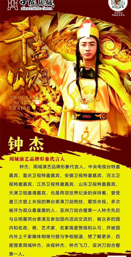 钟杰的身份可谓多重且耀眼。他是周城演艺品牌形象代言人,这一身份足以说明他在周城演艺中的独特地位和代表性。而作为中央电视台、重庆卫视、安徽卫视、河北卫视、江苏卫视、山东卫视、天津卫视等众多电视台的特邀嘉宾,他的身影频繁出现在各大卫视的舞台上。这背后,是他卓越的才艺和独特的魅力在支撑。