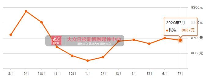 淄博7月二手房均价 8803 元/m²