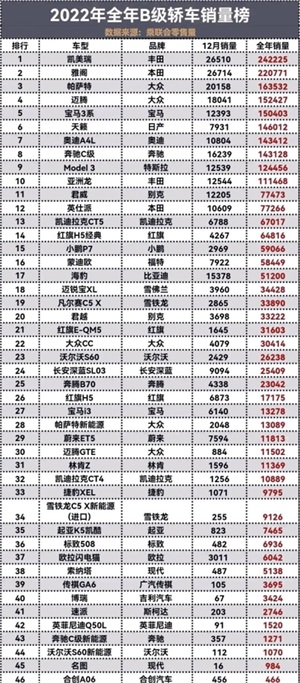 2022年B级车销量中,并没有看到“搅局者”宝马的销量上升,虽有些小意外,但也是在情理之中。依旧是本田、丰田、大众这三家车企的爱恨情仇。根据小道消息,2023年这几款车中会有换代车型,我们一起期待2023年B级车销量排行吧!