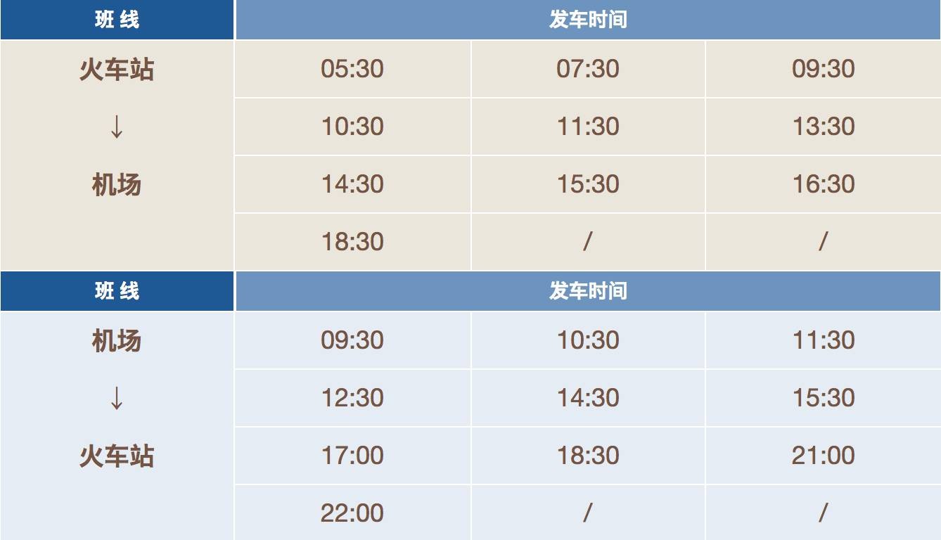☑ 发车时间根据航季、航班时刻进行调整,实际发车时间以站点公布时间为准。