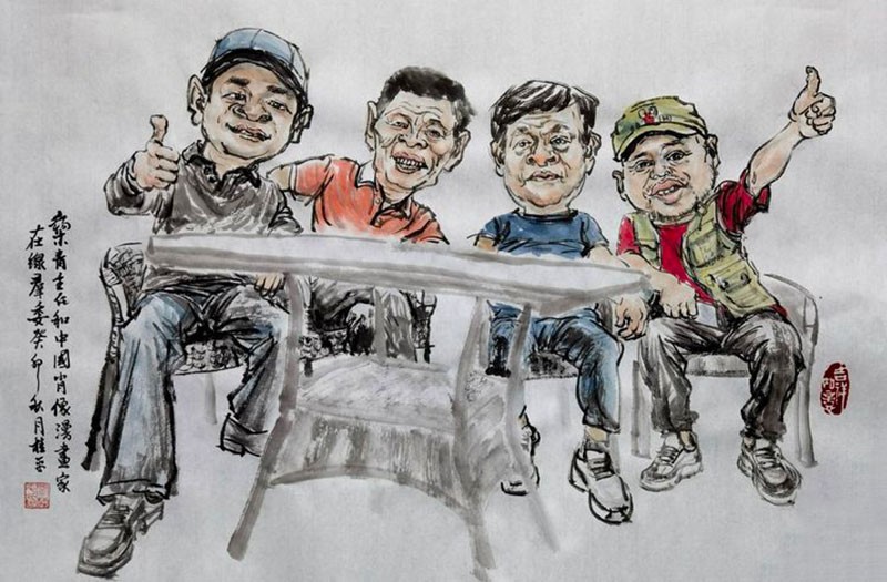 本群委赵雪峰樊旭辉宋宝库与黎青老师在桐乡(闫桂平画)