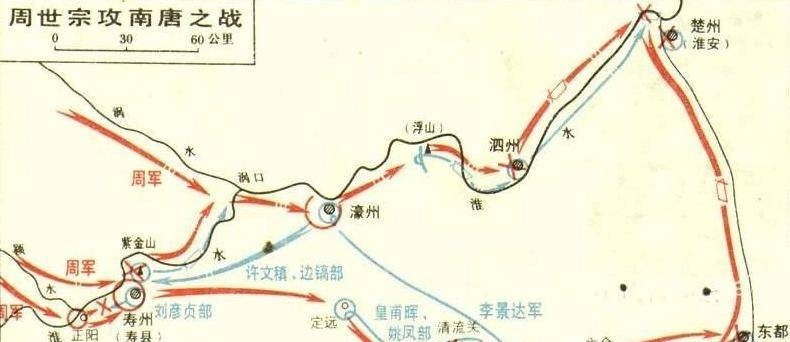 显德二年到显德五年,柴荣三次发动对南唐的战争,南唐的淮南江北之地全部沦陷。