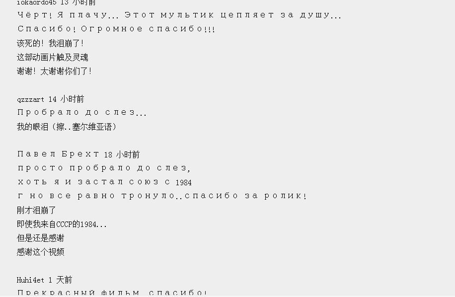 据说这个中国女孩的动画短片让“战斗民族”的网友泪飚的一塌糊涂,也许是缅怀过去吧!