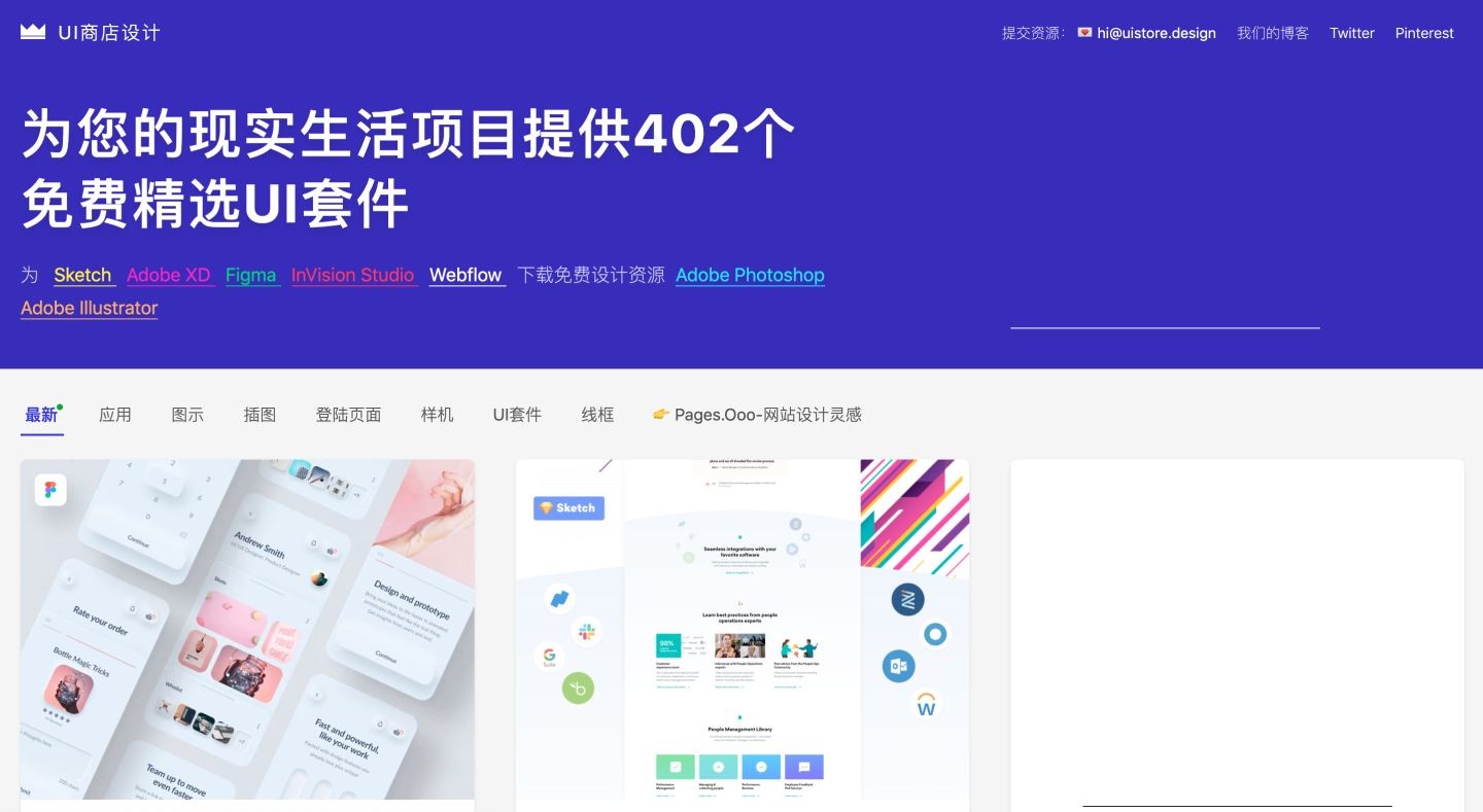 UI Store Design是一个拥有386个精心挑选的免费UI工具包资源,从图标、插画、网页、样机、UI套件、线框应有尽有,而且质量超高!