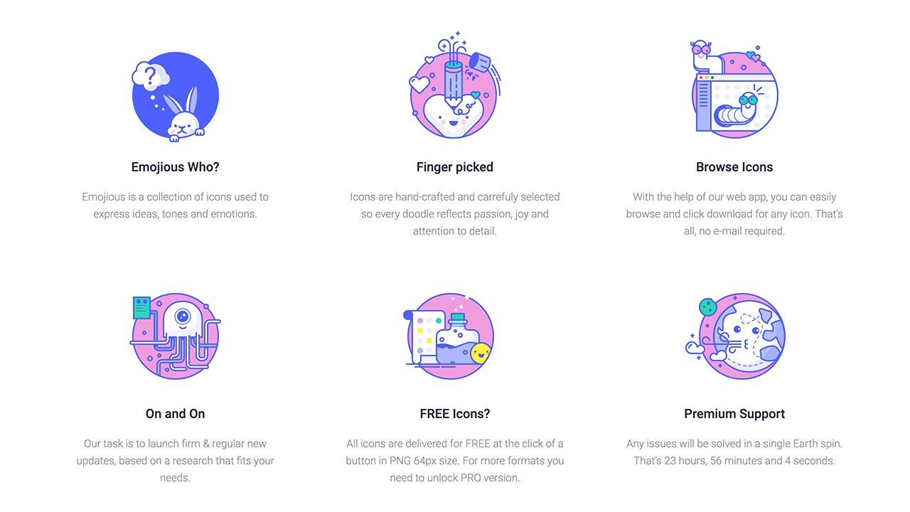 Emojious是一个用于表达想法、语气和情感的图标库,网站目前拥有3600多个图标,其中每一个图标都是精心设计的最终呈现,通过图标你能感受到图标背后所传达的情绪以及创作者对细节的关注。
