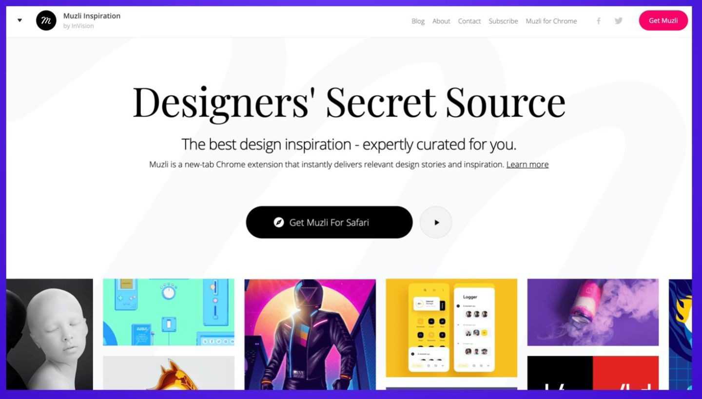 因为是浏览器插件(Browser Extension)的形式,所以安装极其简单方便,通过官网 ccccccc/u1w0l1fdslj.li 首页的 “Get Muzli For Safari / Chrome” 即可下载使用。