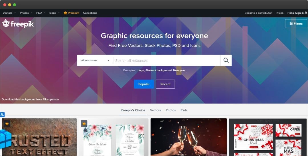 Freepik,是一个国外的设计素材网站,上面的设计资源非常丰富,你可以找到矢量图、位图、Ps和Ai模板。