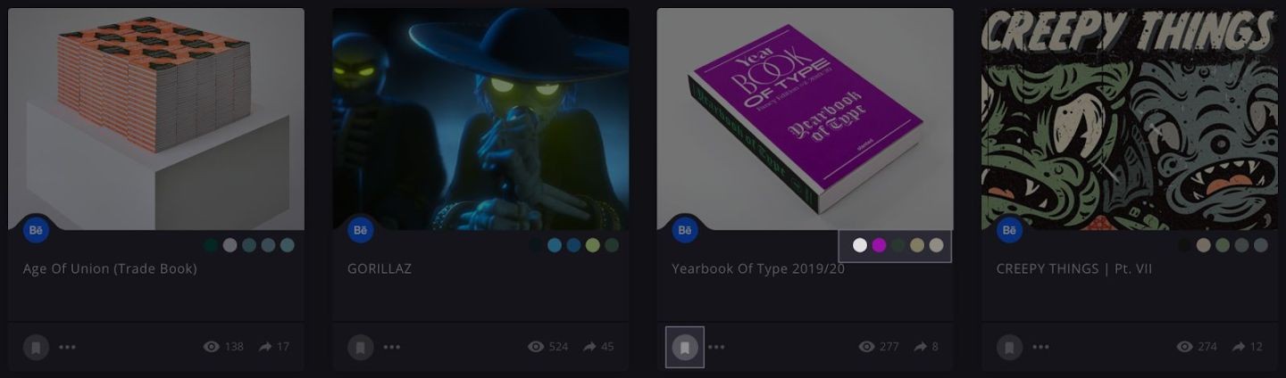 通过创建Muzli账号,可以即时收藏某篇感兴趣的内容,对于设计师更方便的是,提供了自 动识别色板功能,并提供下载。