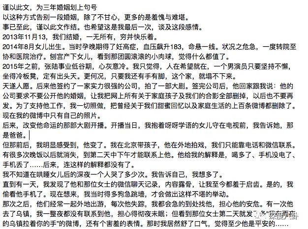 事态最新的进展是,张陆前妻邵思涵今天凌晨再发长微博,以她的角度讲了他们婚姻的种种,生孩子的不易,在张陆低谷期时是如何相互扶持,以及张陆成名后的忍辱负重,感情出现问题之后的歇斯底里。