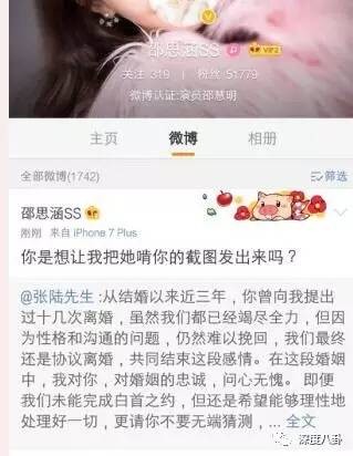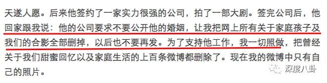 按邵思涵所说,张陆签了正午阳光后被要求不能公开婚姻,还要求她把微博里的所有家庭合影,孩子的照片都删掉,她也一一照办。