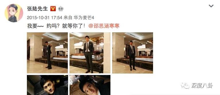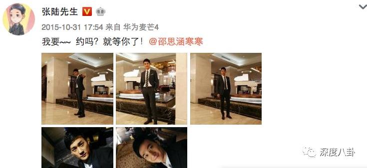 邵思涵提到的两次张陆张棪琰暧昧的场景,一次是去年10月在乌镇,她一夜未找到张陆,直到第二天看到张棪琰的微博,知道他们在一起。