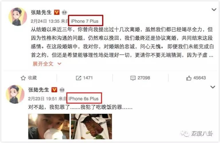 这个事情真假先不谈,张陆的手机确实是换了。2月24日中午张陆出面回应此事发微博,显示手机来源已经和2月23日晚不一样。