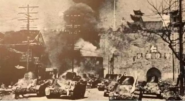 在进攻南京期间,日本军队部署了大约20万陆海空军队,而中国驻军只有15万。除了数量上的劣势之外,中国和日本在武器分配上还有很大的差距。图为日本坦克炮击南京大门。