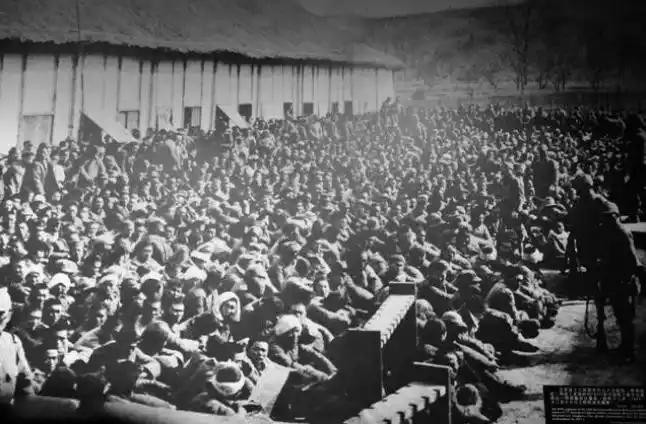 日军占领南京后,他们首先用屠刀瞄准被俘的中国士兵。南京保卫战失败后,大批士兵因撤退混乱而滞留南京。战争结束后,日本军队集体屠杀了他们。图为被俘的中国士兵。