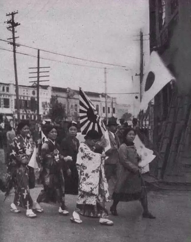 随着日本侵略者对南京的占领,许多普通日本人和他们的家人来到南京居住。街上随处可见穿着和服、举着国旗的日本人。