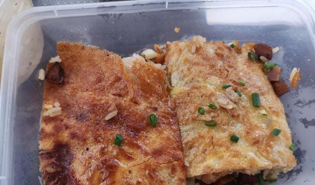 三鲜豆皮讲求皮薄酱清火功正,豆皮外脆里嫩,油而不腻,是用绿豆磨成粉做的皮,里面的馅料有糯米、笋干、豆干、瘦肉丁,食材搭配得很完美,咸香味道正宗恰到好处,豆皮都是现做的,每一盒有两块,而且都要过称,保证足量,虽然装在保鲜盒里,但是一定要趁热赶紧吃,这样豆皮才不会被捂软,吃起来清脆可口。