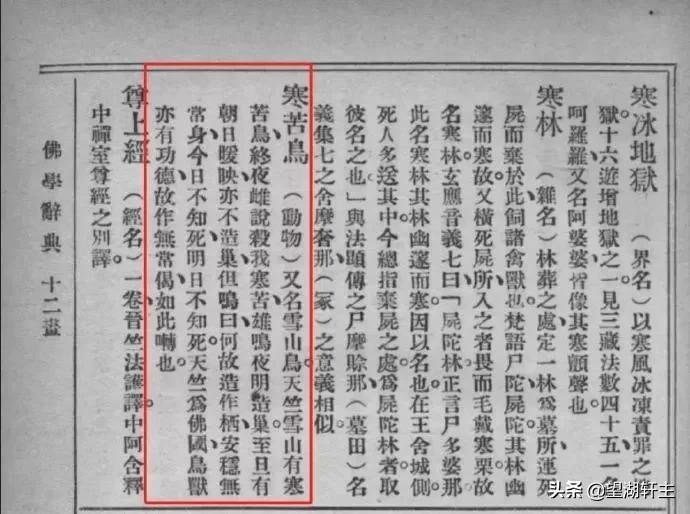 据民国学者丁福保所编著的《佛学辞典》,佛经中的“寒苦鸟”故事,是这样子的: