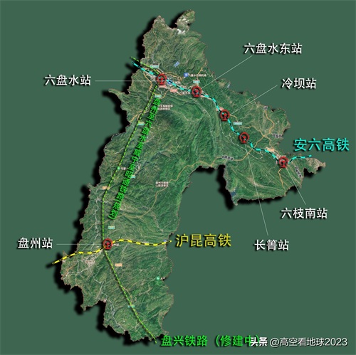 六盘水在沪昆高铁即将进入云南时获得了一个高铁站—盘州站,加上安六高铁沿线的六盘水、六盘水东、冷坝、长箐站、六枝南站,这让六盘水下辖的三个主要行政区均开通了高铁。根据贵州省“十四五”铁路规划显示,未来六盘水将修建盘一条州至六盘水至威宁至昭通铁路,设计速度250千米/小时。不过相对于正在修建的盘兴铁路,六威昭城际铁路开建还需要漫长等待,因为盘兴铁路目前已进入铺轨阶段,它是贵州省实现“市市通高铁”目标的最后一程。