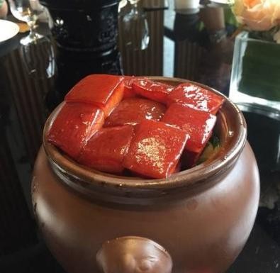 毛氏红烧肉,肥而不腻,肉质鲜美,跟江浙一带的红烧肉还是有区别的,少了些甜味更多的则是融入的湘菜的辣味,青椒鱼,一端上来就闻到一股浓浓的藤椒味鱼肉非常的薄,吃到口里也非常的嫩,打底的是莴笋片。刚开始吃只感觉鲜辣冲鼻,吃到后面才发现整个鼻腔都被辣到发呛。如果不太能吃辣的人建议还是少吃这道菜。千叶小炒肉,将青椒换成了千叶豆腐,起到减缓麻辣的效果,最后就是他们家备受好评的芋头青菜钵,是将芋头熬煮成羹和青菜煮汤,入口丝滑绵软青菜清香,有效舒缓一下麻痹的味觉。