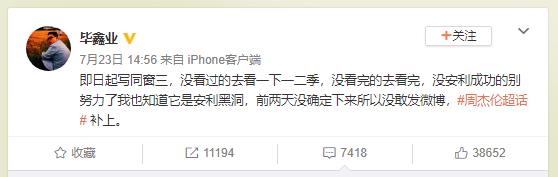 对于网友的这些催促,毕导的微博简介直接改成了有第三季正在写。想必这也是为了让广大剧粉们安心。