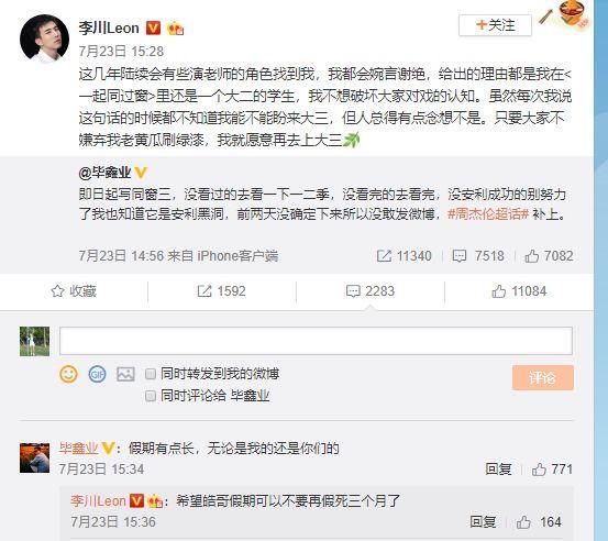 这次的毕导发文,并没有看见毕十三出来互动,果然毕十三戏里戏外都是一样的高冷。