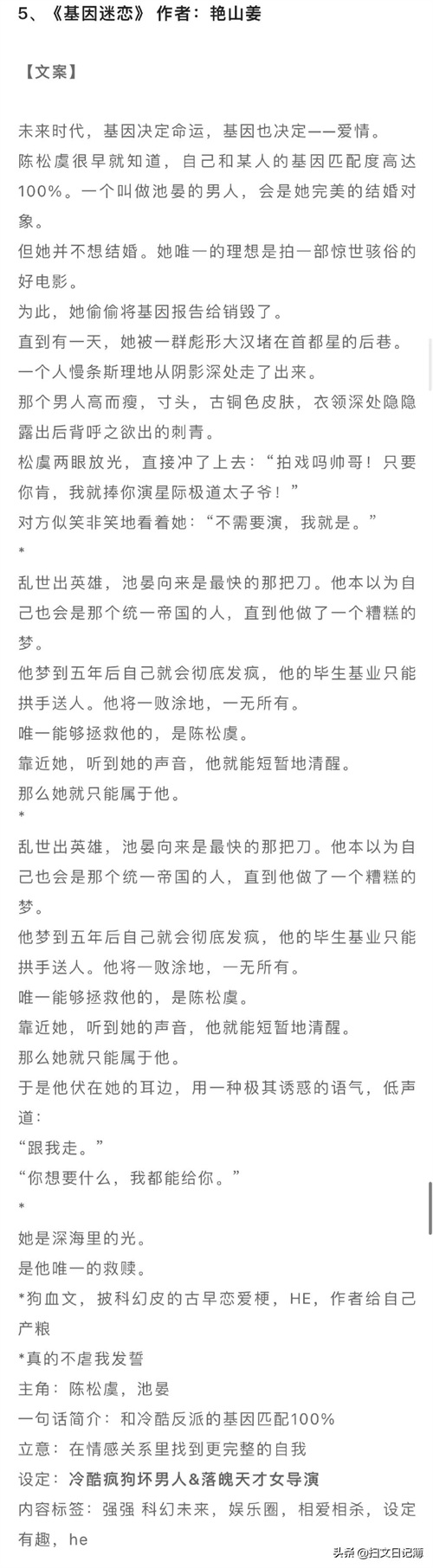 5、《基因迷恋》 作者:艳山姜