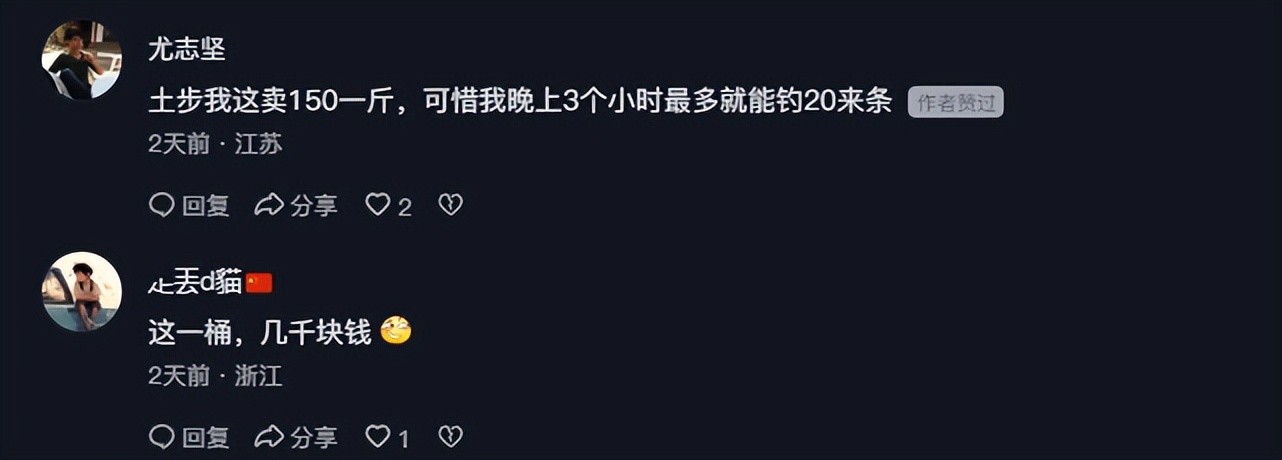 只见一位江苏的网友这样说道:“土步我这卖150一斤,可惜我晚上3个小时最多就能钓20来条”。