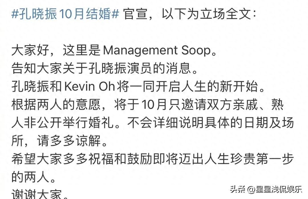 如今看来孔孝真算是被打脸了,才4个月不到半年的时间就宣布了结婚的喜讯,不过这是好事估计当时确实没打算,但是时间越长越觉得合适就准备结婚了,很开心她能找到自己的幸福。