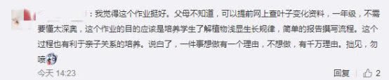 但也有网友觉得这个作业很好,不仅可以培养孩子了解植物,知道简单的报告撰写流程,还有利于培养亲子关系。