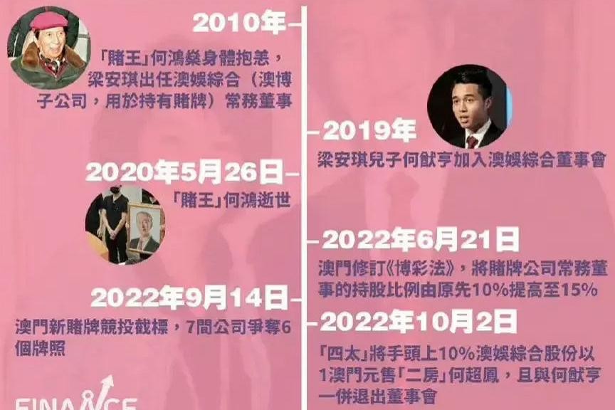 目前四太梁安琪协助二房姐妹何超凤和何超琼打理家族的娱乐事业,她也是澳娱集团的董事成员,儿子何猷亨也早在几年前就加入到了集团的高层管理名单之中。